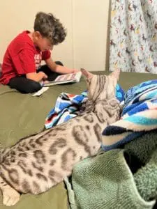 Our kittens are well socialized, not caged, born and raised in our home, have A 2 year health guarantee, have had their 2 sets of shots. Our breeding cats are all health tested for HCM yearly and are negative. They are also tested for PK Deficiency and Bengal PRA (Progressive Retinal Atrophy) because these are all things Bengal Cats are prone to getting. There is a reason why quality Bengal Cats are more costly than just any Bengal Cat.