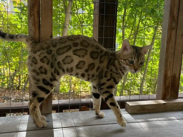 Our cattery is located in Lisbon Falls, Maine about 20 minutes from L.L. Bean. There are no outside cats permitted in our cattery. Visits to our cattery are limited to people who have an interest in adopting our bengal kittens.Â