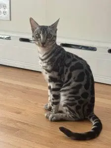 The cost of our kittens starts at $1,700 for our brown rosetted kitten. Our silver and Snow Bengal kittens are $2,000. A kitten I would keep myself to show is considerably more and would start at $3,000, because this kitten would have to fit the breed standard almost perfect.