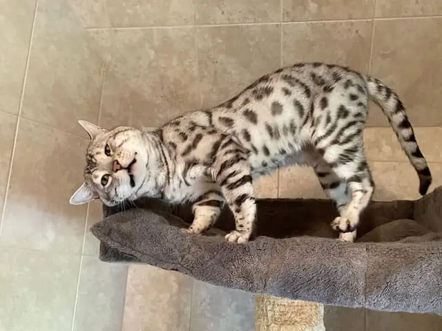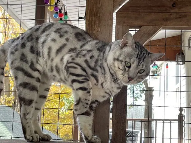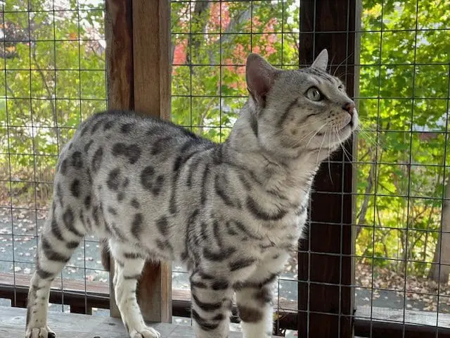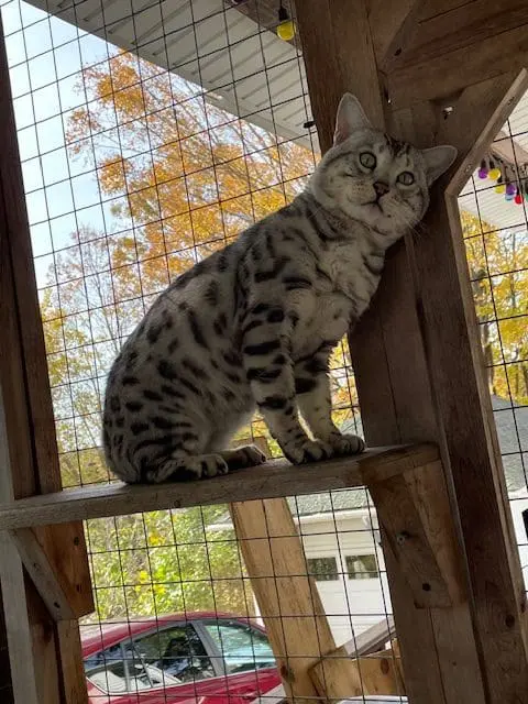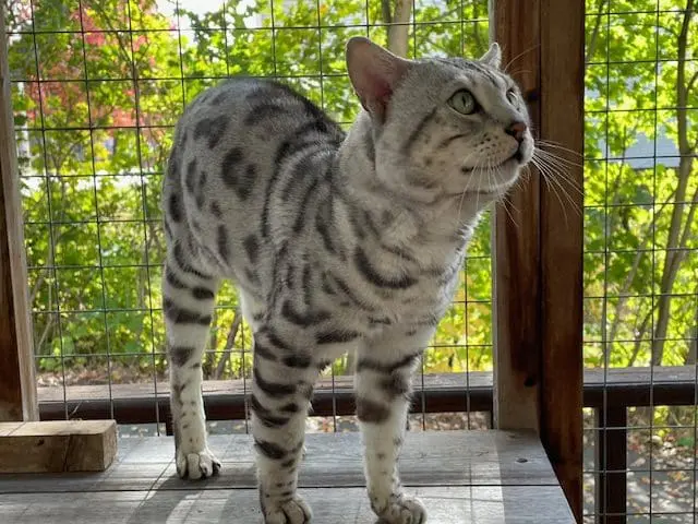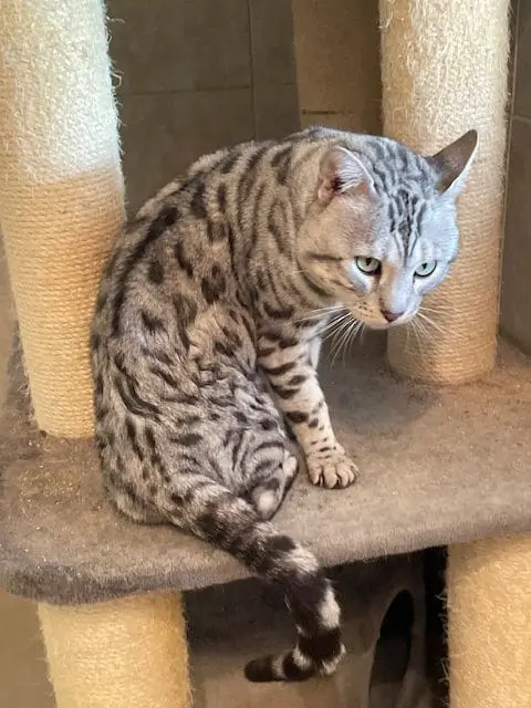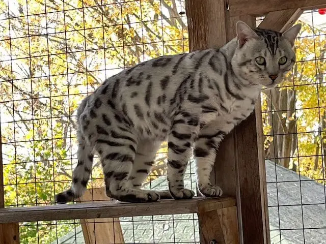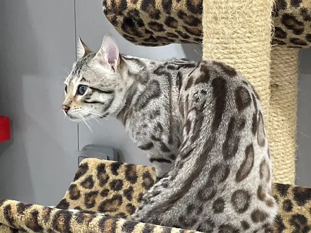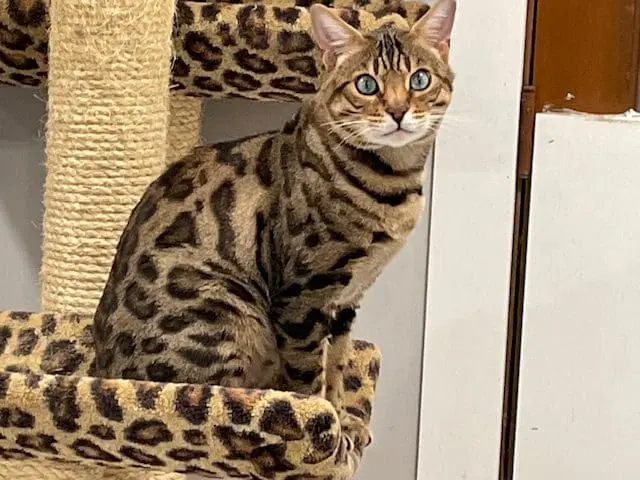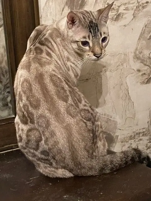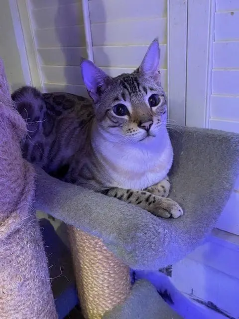 Benjamin is our second cat that we’ve gotten from Snow Tundra Bengals. He is such a love! He acclimated well into our house with other cats and two dogs. He’s friendly, playful and very smart. He figured out the cat wheel the first time we tried it. Hermina has been a great breeder to work with. Her cats are well cared for, receive high quality vet care and pet food and she’s very communicative and supportive when I’ve had questions. Highly recommend!!