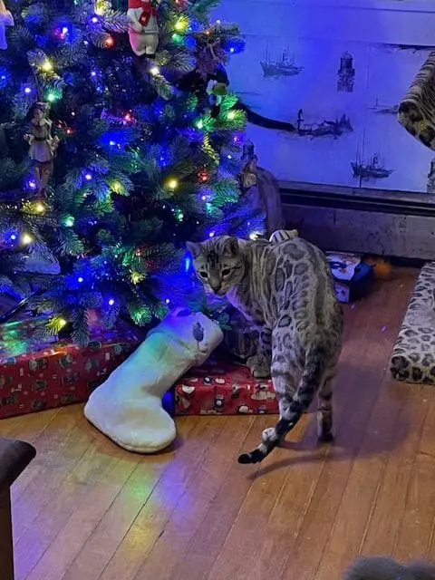 Again we cannot thank both of you so much for such a great and hilarious kitten. Olive has easily become another family member, and boy is she growing! Her coloring changes every week and boy is she beautiful. Thank you for the Christmas card! I say every year I will do cards, so next year we will send cards hahahha. I know this breed cat isn't supposed to be a "lap cat" but let me tell you, Olive at night loves sitting on either my lap or Joey's lap and watching our new obsession show "wicked tuna" ... I think she's like to catch one hahaha. Happy new year, and it is going to be a great one!
