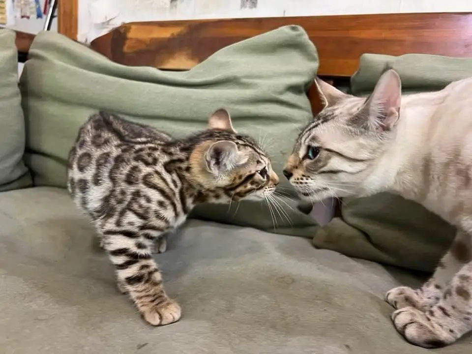 Anyone who is considering a Bengal should check out Snow Tundra Bengals. Hermina and Peter truly love their Bengals. They are not kept in cages, fed top quality food, and routinely tested for medical issues. The kittens are well socialized and used to human contact. My two kittens were from two different litters and I was concerned about how they would get along. The introduction went well and a week later they were best buddies!