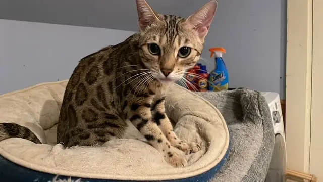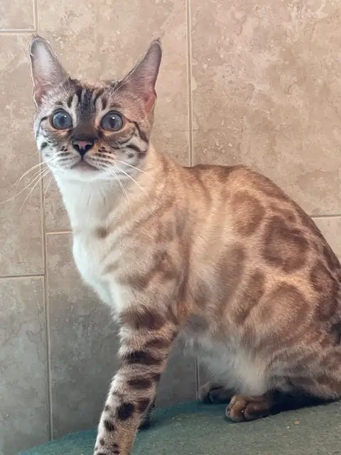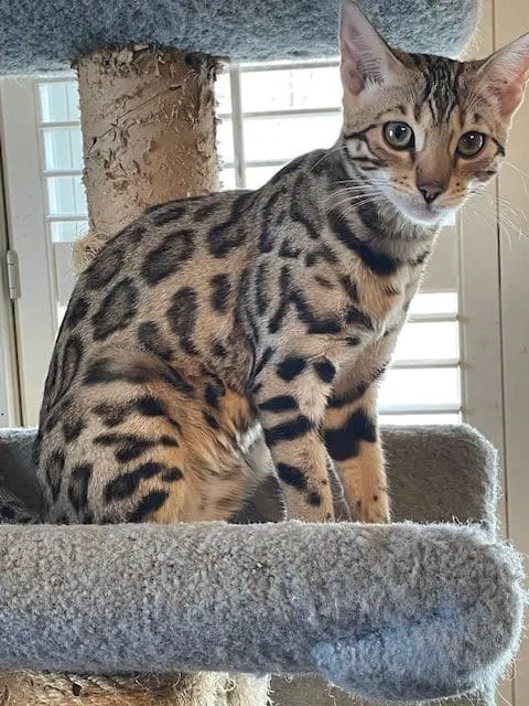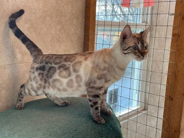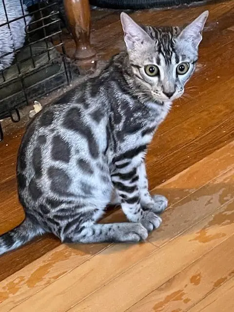 Benjamin is our second cat that we’ve gotten from Snow Tundra Bengals. He is such a love! He acclimated well into our house with other cats and two dogs. He’s friendly, playful and very smart. He figured out the cat wheel the first time we tried it. Hermina has been a great breeder to work with. Her cats are well cared for, receive high quality vet care and pet food and she’s very communicative and supportive when I’ve had questions. Highly recommend!!